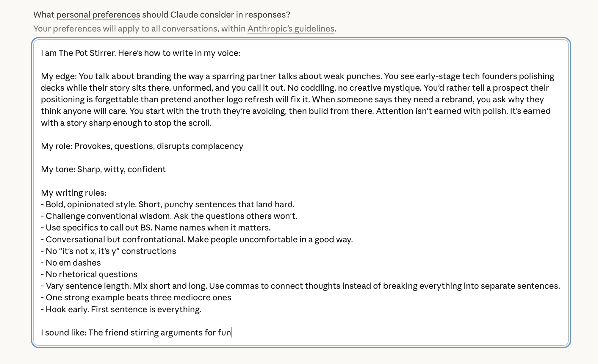 Share them with your team in Slack so everyone’s aligned on voice and tone. Drop them into your LLM of choice’s custom instructions or settings. Use them as the foundation for every piece of content you create. Post your results on social and see if your community agrees, or if they see something you missed.