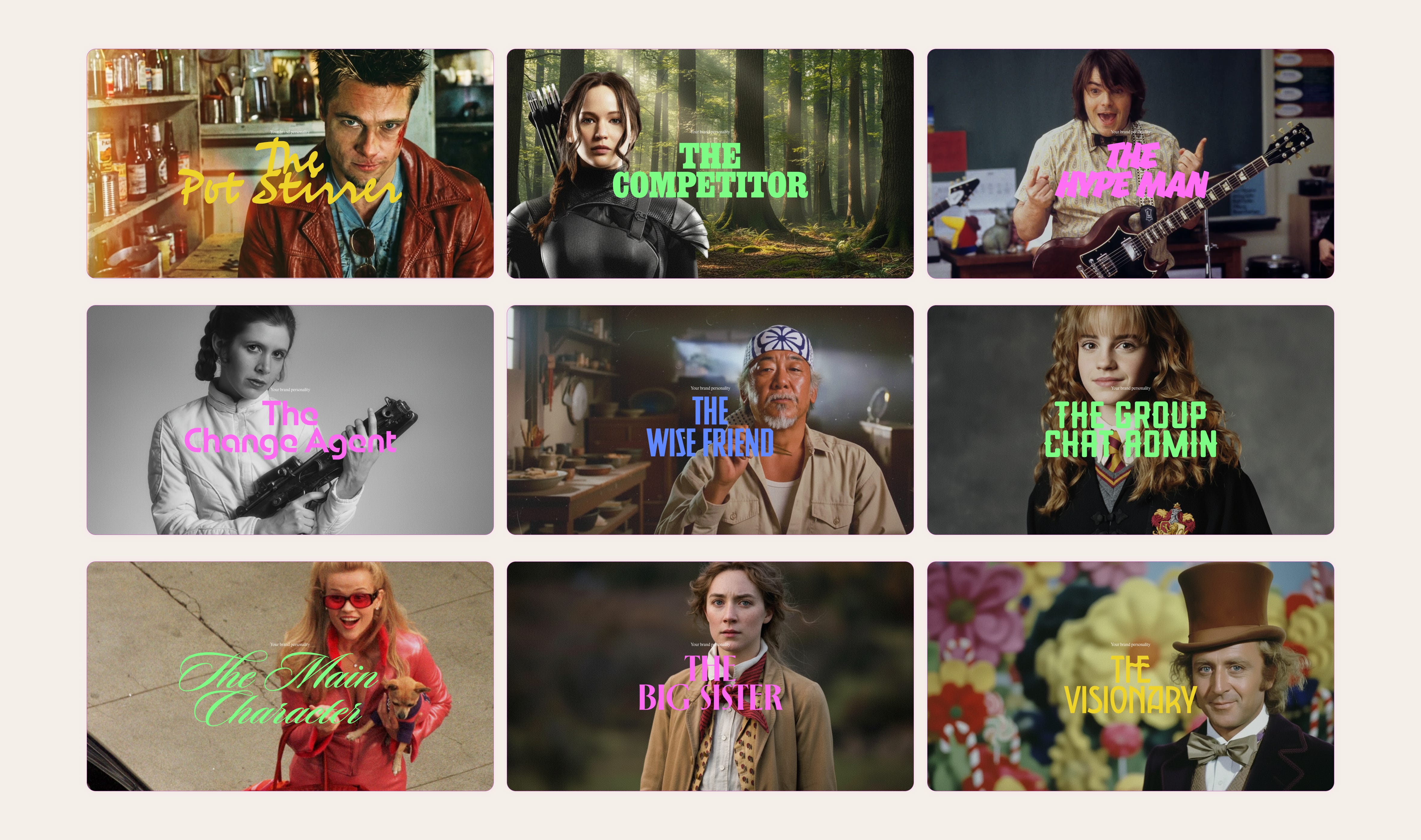 We took inspiration from the personality tests that actually stick with people: Myers-Briggs, the Enneagram, and honestly some of the more chronically online corners of the internet too. BuzzFeed quizzes. Care/Of. (If you know, you know.)
